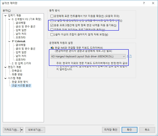 1. 신세벌식 P2와 콜맥 자판을 윈도우에서 편리하게 사용하고 자 함