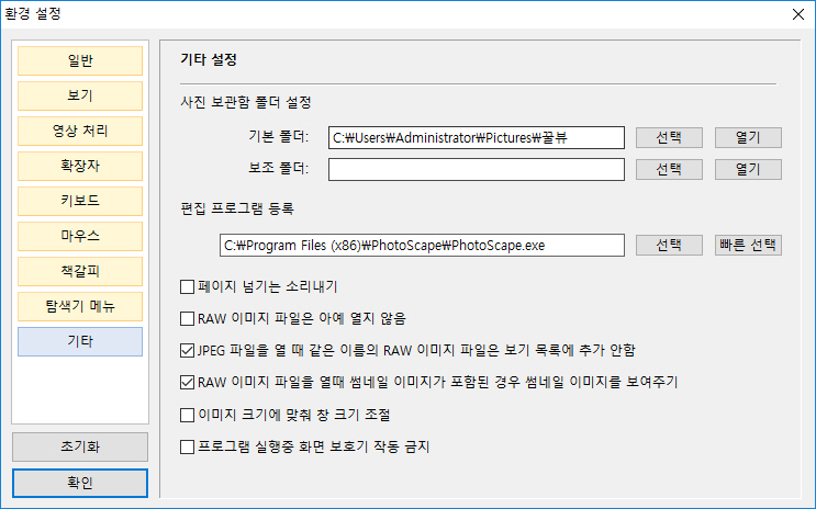 경로 : 꿀뷰 - 환경설정 - 기타 - 편집 프로그램 등록