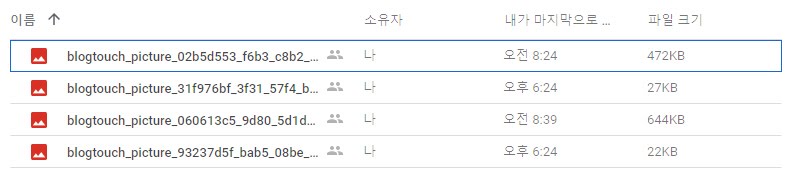최대 단점은 글 작성 시 첨부한 이미지가 구글드라이브에 특정 폴더가 자동 생성되면서 저장되는 것입니다. 아래 처럼 구글드라이브에 이미지가 저장됩니다.