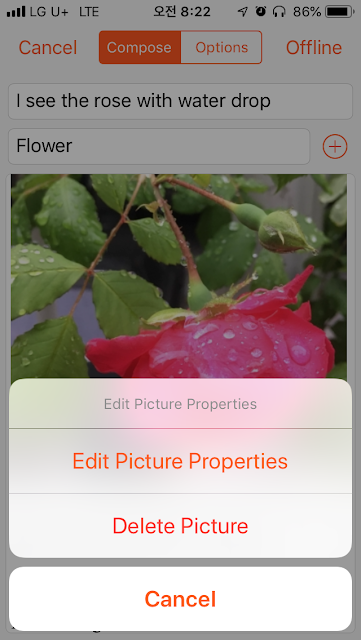 사진 수정은 사이즈 수정만 가능한데 이 부분도 아이폰에서는 상당히 불편한게 한정된 화면에서 이리 저리 작업하는 것을 고려하지 않아서 수정할 화면이 안보이는 경우가 자주 발생합니다.
