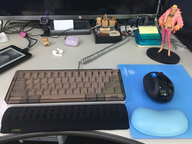 ==> 나는 해패해킹 흰색 키보드를 사용하지만 블랙스모그가 더 끌렸다. 하지만, 막상 덮어보니 확실히 흰색 키보드에는 투명 가켈 키보드루프가 더 이쁘다.
