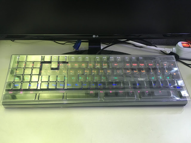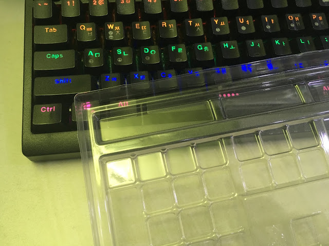 자 그럼 사진과 동영상을 보자. 아래 보면 일반적으로 기계식키보드 구입하면 함께 동봉되는 플라스틱 키보드 덮개도 볼 수 있다.