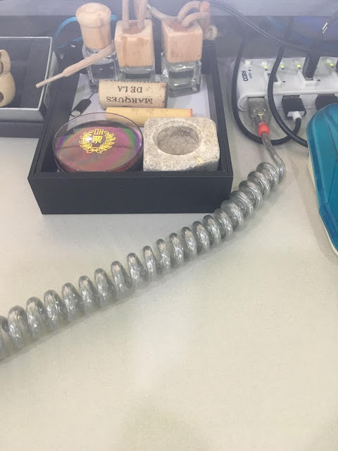 해피해킹 키보드 기본 케이블 연결해본 모습.... 참 케이블 고급지지 않다.