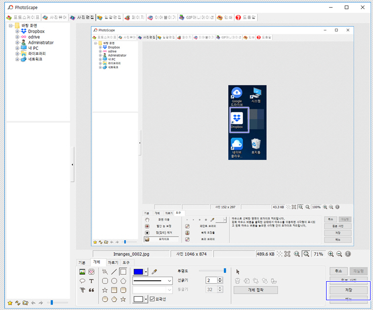 이 상태에서 상단의 '저장'을 누르면 됩니다. 수정 전의 원본은