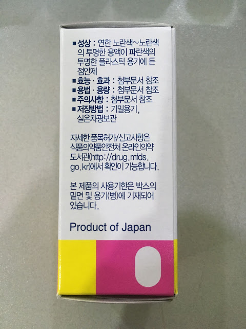 ■성상 :연한 노란색~노란색의 투명한 용액이 파란색의 투명한 플라스틱 용기에 든 정안제