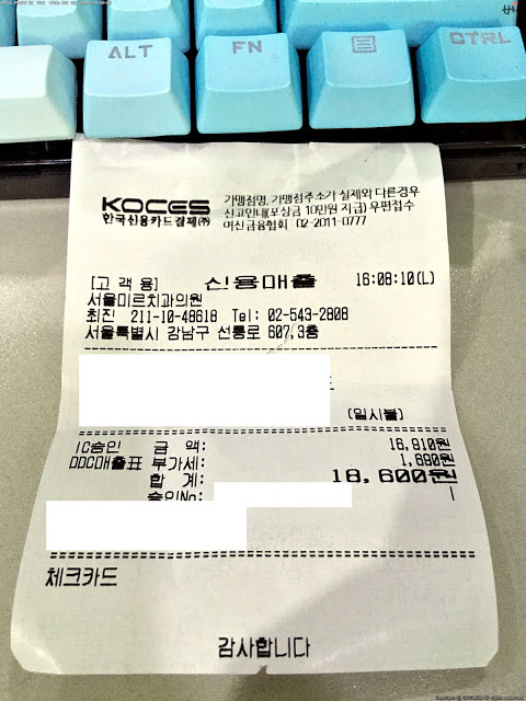 보험이 적용되기에 상당히 저렴???하게 치료비가 나왔다.  맘에 들어서 차주에 스켈링과 치아 표면 강화하는 약품 처리 2차 받으로 가기로 예약했다.