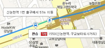 교보타워사거리(신논현역 6번출구) → 강남역 → 역삼동 →