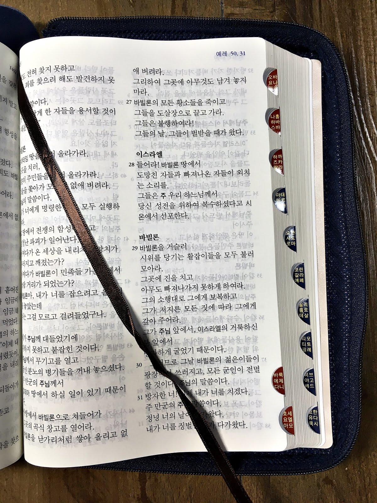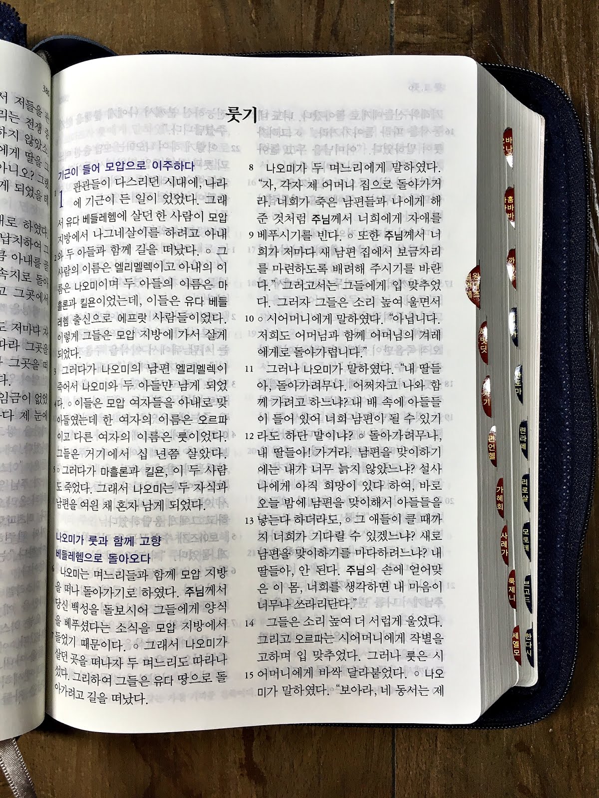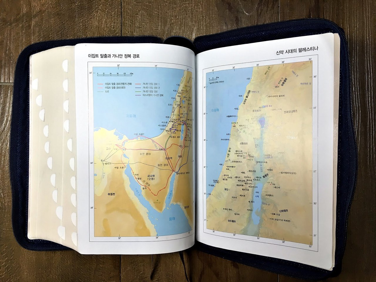 '[블루] 성경 2단 국판 (지퍼) - 금장.반달색인' 이 책은 창세기 초반을 읽고 있는데...