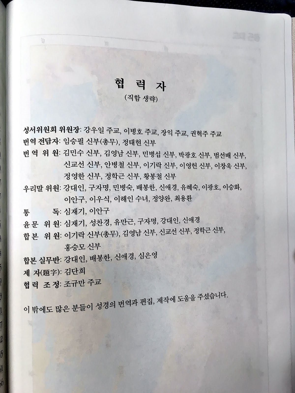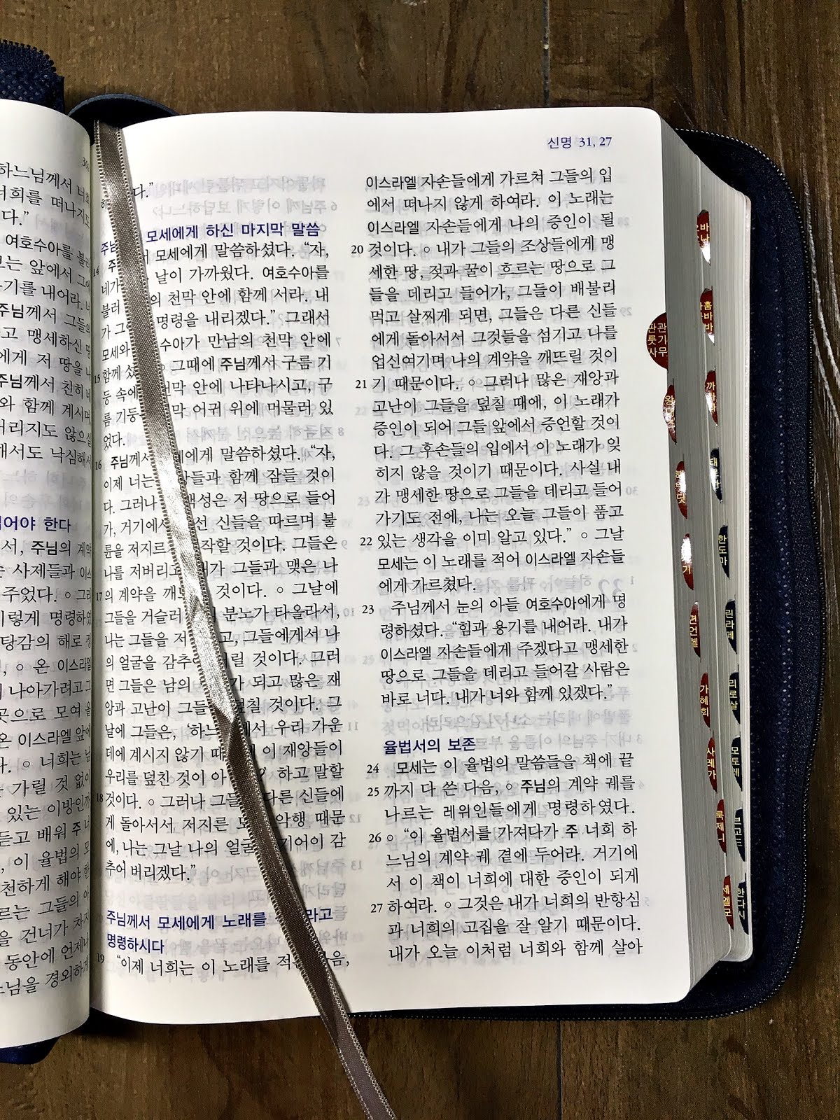 구약과 신약에 책갈피 실이 각각 있다. 배려가 느껴진다. 종이의 두께가 상당히 얇아서 뒷편의 글자가 비친다. 장점이다 단점인데....