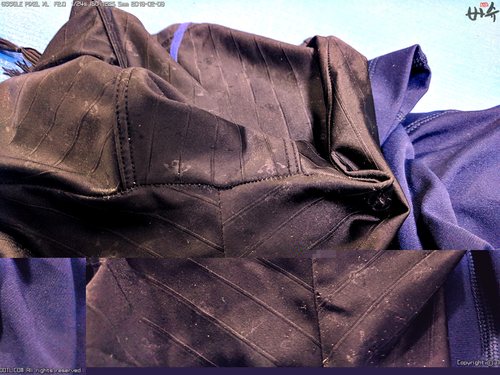 마찰이 잘 일어나는 부분에도 저렇게 되어 있어서 수영복에 구멍이 날 수 있다.