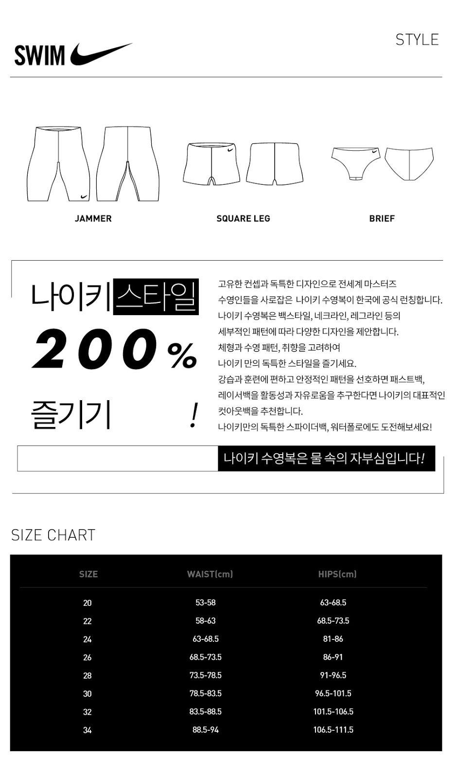 수영복 사용방법에 대한 설명도 잘 명시되어 있다.