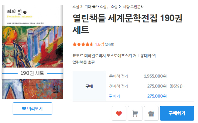 리디북스 열린책들 세계문학전집 190권 쿠폰 구입 후기