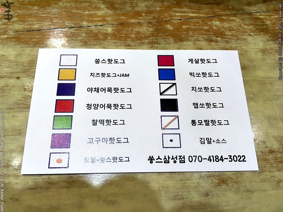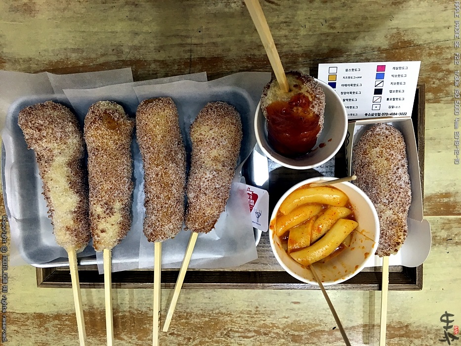 막대에 표기가 되어 있다. 그 표기로 어떤 핫도그인지 분별이 가능하다. 통모짤핫도그 엄청 맛나다.