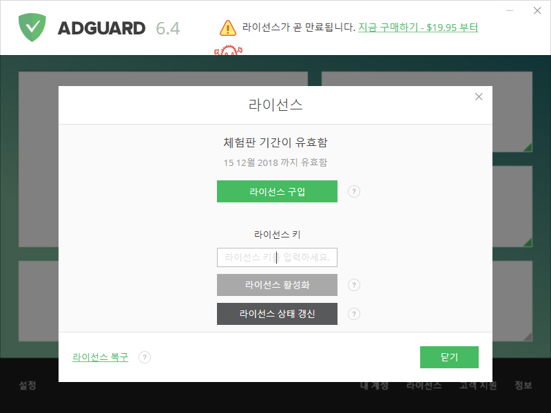 # https://adguard.com/ko/license.html#new/RUB/PREMIUM/36500/1 평생라이선스 부분을 클릭한다.