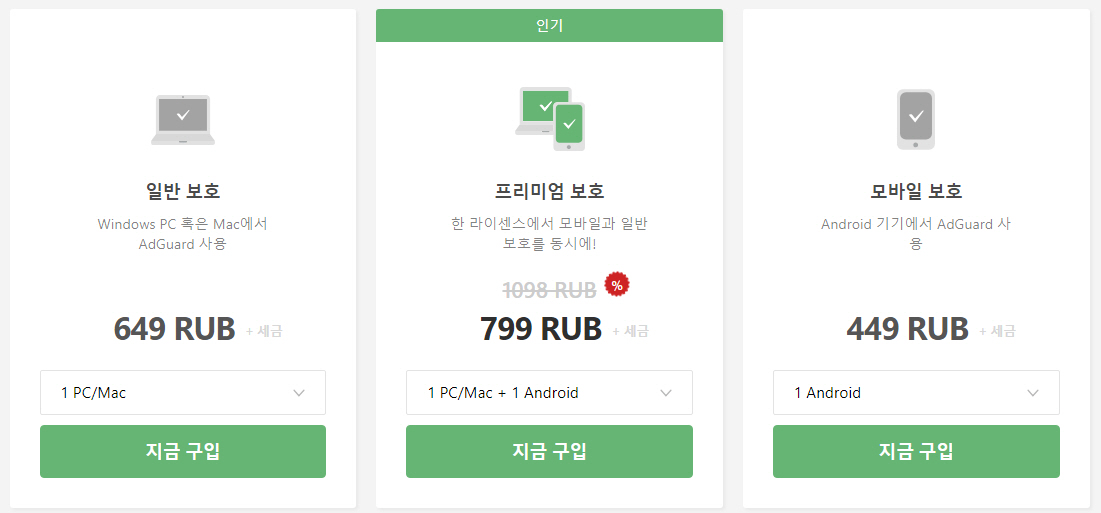 애드가드 러시아 루블 결제하는 방법