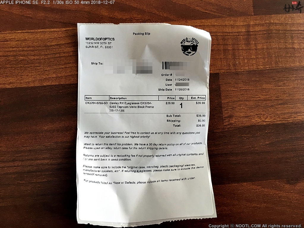 수령일 : 2018년 12월 07일 <-- 배대지를 통한 합배송으로 인해서 많이 걸림