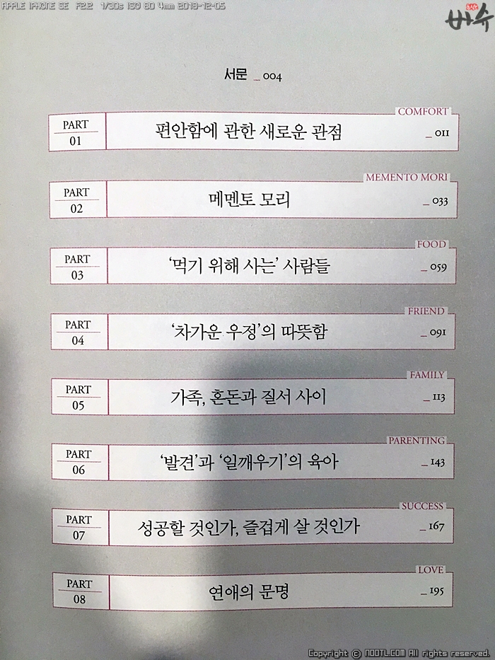 어느 책장에 꽃혀있기에 읽게 되었다. 문체가 쉽기에 술술 읽혔는데 논리정연한 글은 아닌 것 같다. '소확행'이란 시대적 아이콘에 편승하여 나온 책 같지만 상당히 많은 화두를 던져준다.