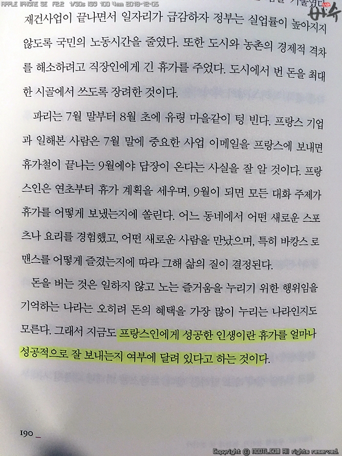 190 페이지 : 성공이란 얼마나 양질의 휴가경험을 했느냐 여부에 달려있다.