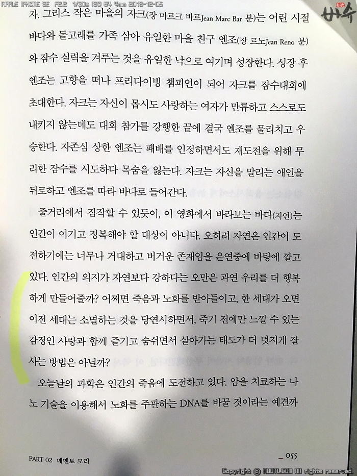 '왜 사느냐?' 에 대한 질문의 답을 얻을 수있다. 물론 정답은 아니겠지만 수 많은 답 중에 공감갈만한 답을 발견할 것이다.