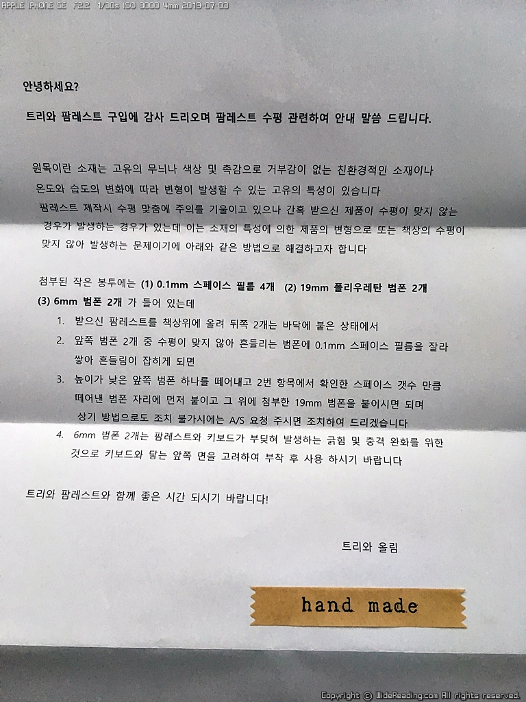 구성품..... 수제품이다 보니 딱히 설명서 같은 것은 없는데..... 안내장이 들어있다.