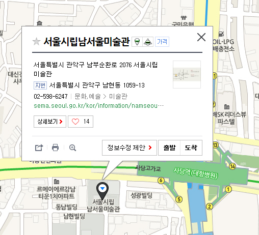 사당역 근처에 있는 공립미술관이다. 관람을 무료로 할 수 있다.