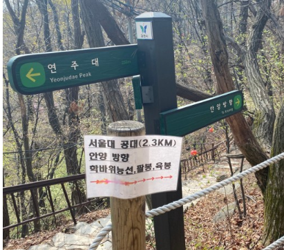 하산 길은 '안양방향'으로 가야지 서울대로 가게 됨