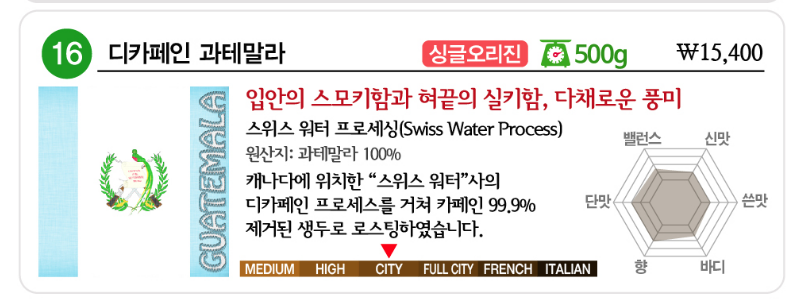 16.디카페인 과테말라 500g / 2. 에스프레소/모카포트 분쇄요청 / 4. 계량스푼(구매수량1개 )
