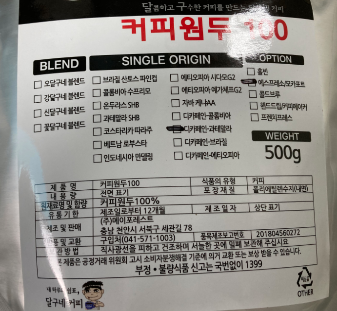 달구네 원두커피 500g 디카페인 과테말라 구입 후기