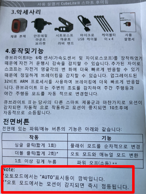 - 오토모드가 잘 작동한다. 주간 시에도 작은 밝기로 잘 작동한다.