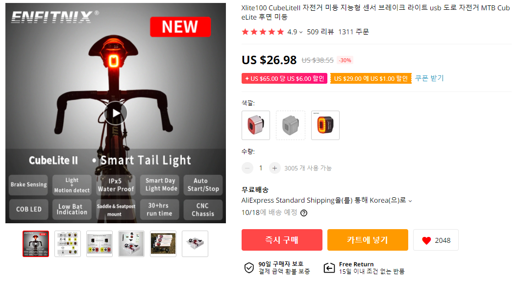 자전거 후미등 추천 큐브라이트2 구입 후기