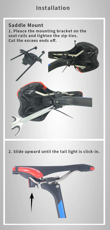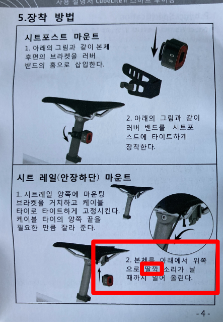 모든 구성품이다. 안장 마운트와 싯포스트 마운트를 제공한다. 안장마운트는 케이블타이 4개를 제공하기에 2번 장착할 수 있다.