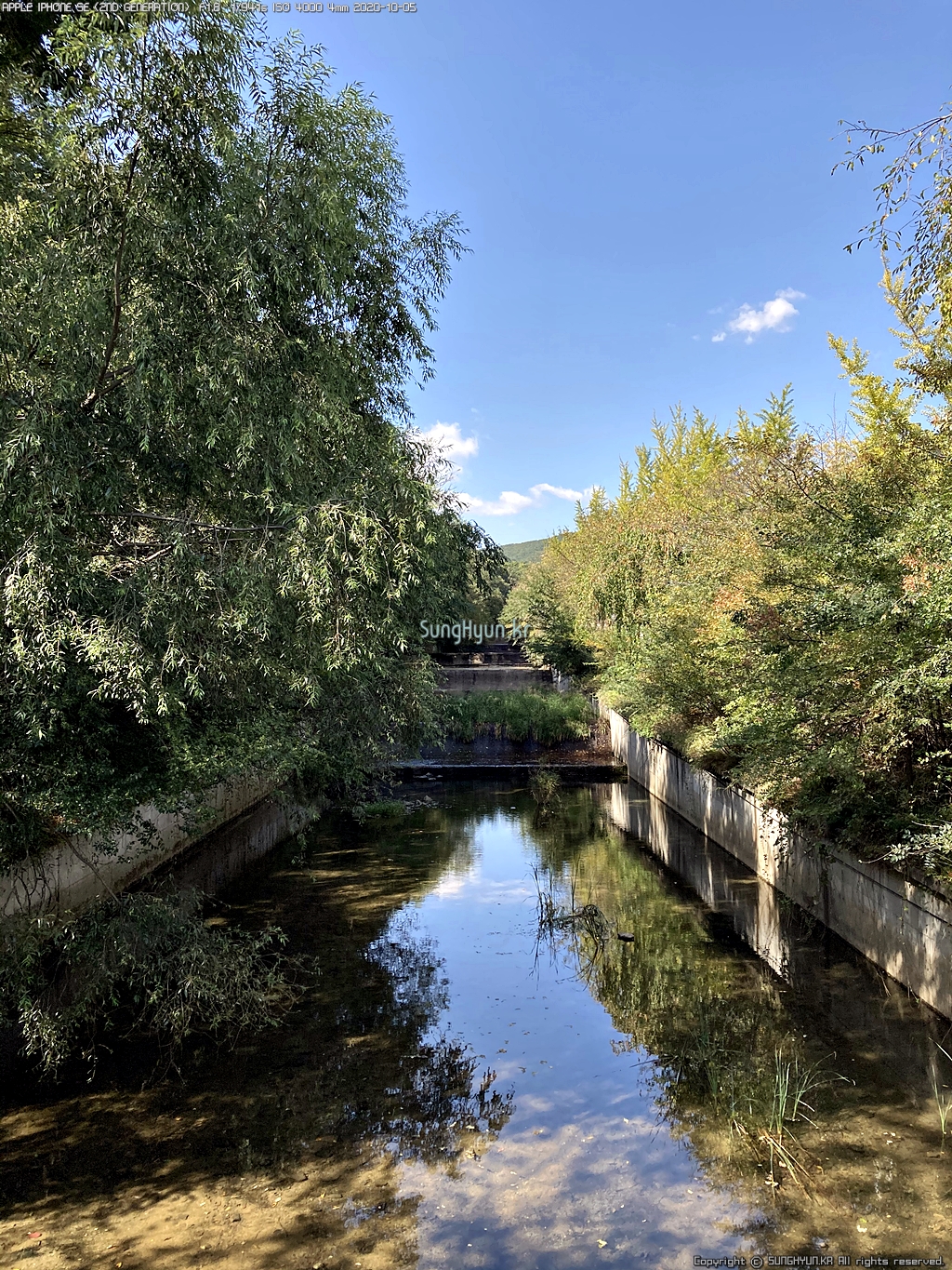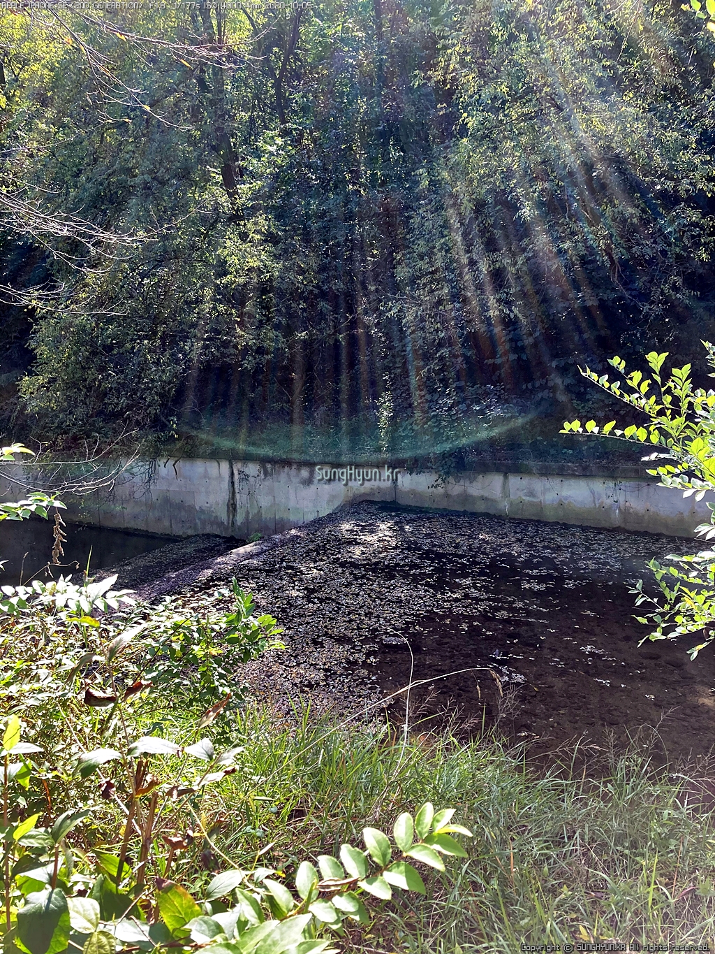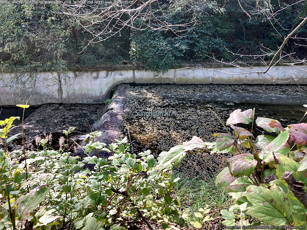 근처 계곡의 개울은 콘크리트로 정비가 되어 있어서 운치는 없지만 물은 맑다.