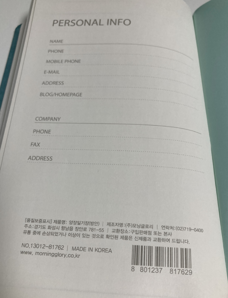 일기장 사용후기, 구입후기, 모닝글로리 10000 양장 일기장(방안)