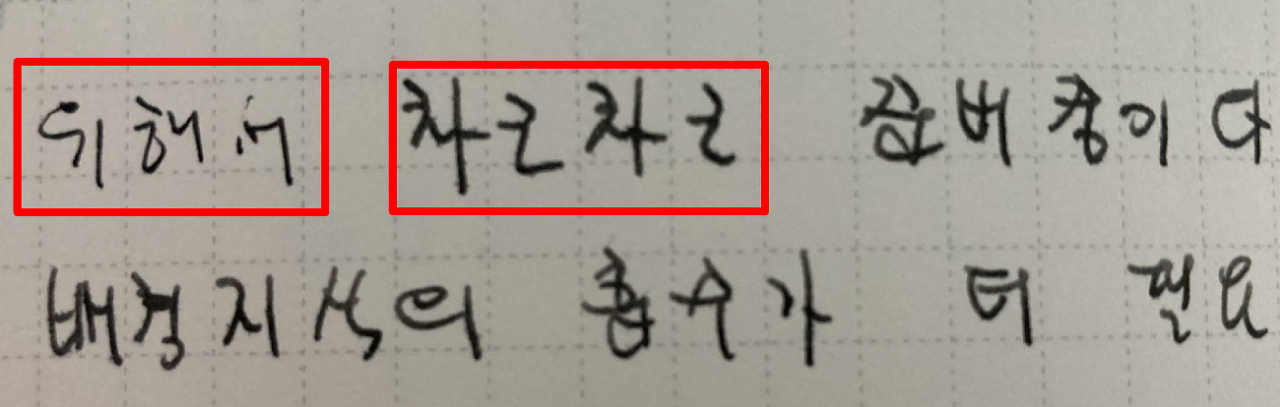 + 사선이 처음엔 좁고 작게 느껴졌는데 실제 필기를 하니 적당하다.