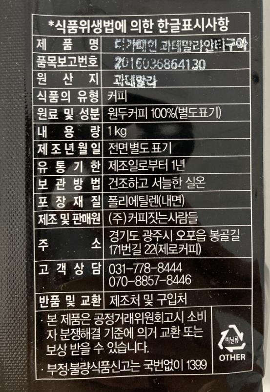 2020_10_07 제품구입 - 제로커피 디카페인 과테말라안티구아 1kg