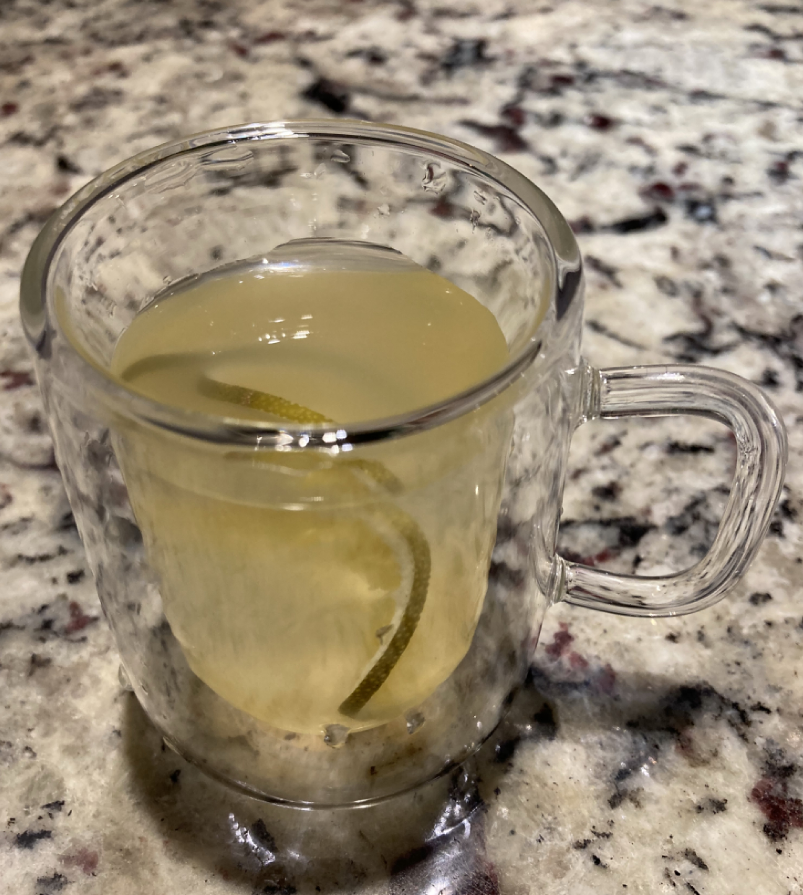 음식을 마무리하면 마지막에 이것을 준비해 준다. 레몬 차인 것 같은데...... 달지 않는 달콤함을 전해준다.