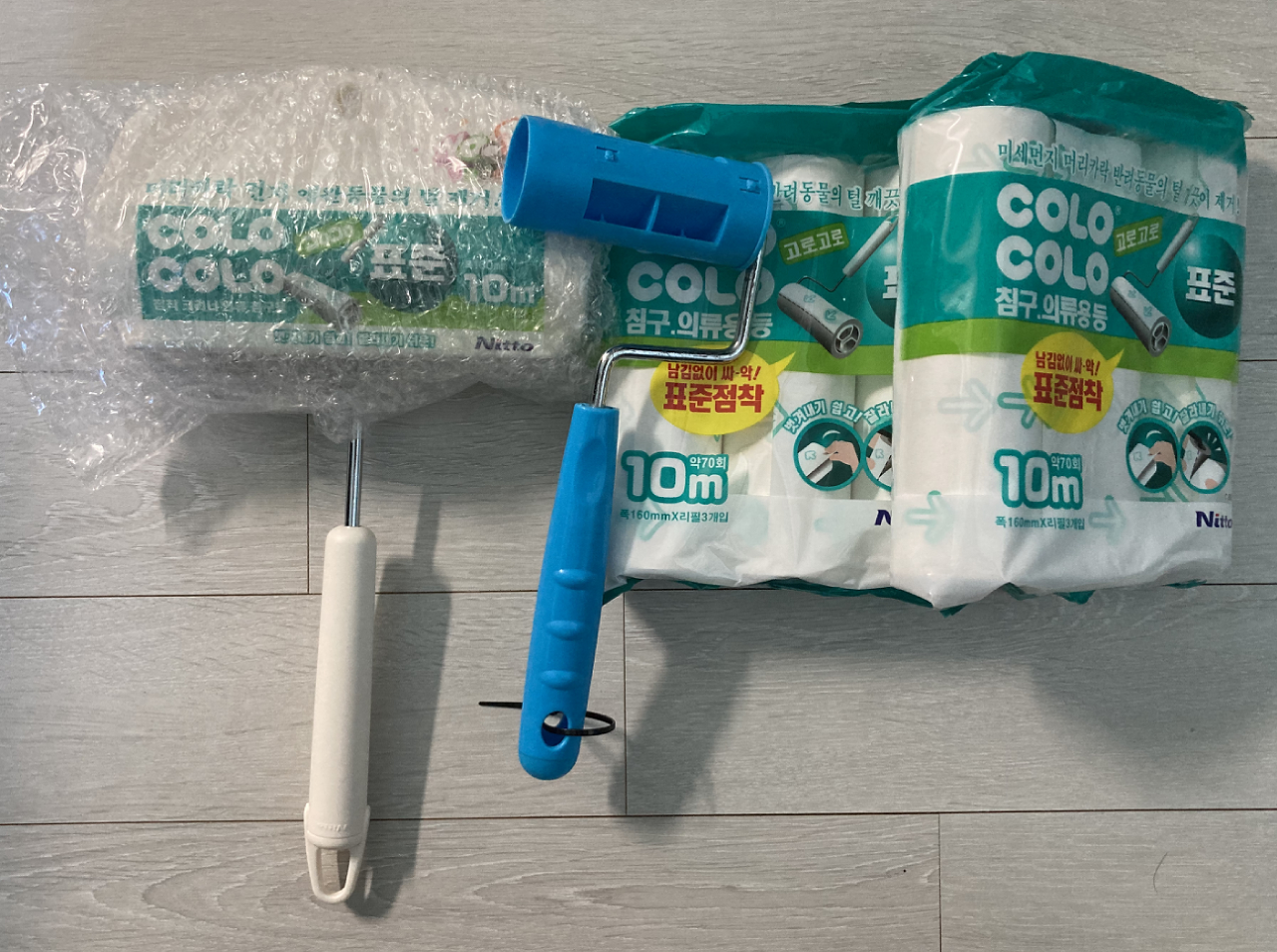 파란색 롤러는 기존에 다이소에서 구입하여 사용하던 것이다. 손잡이 길이가 짧은데 롤클리너도 다이소 것은 두깨가 얇기에 파지에 딱 맞았다.