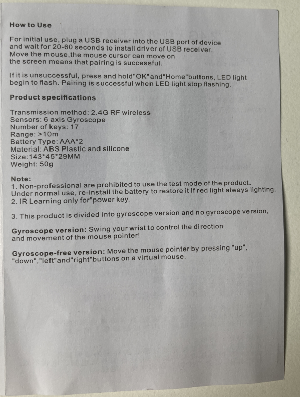 - 블루투스가 아닌 2.4기가 무선통신으로 작동한다.(배터리가 더 오래 갈 듯 함)