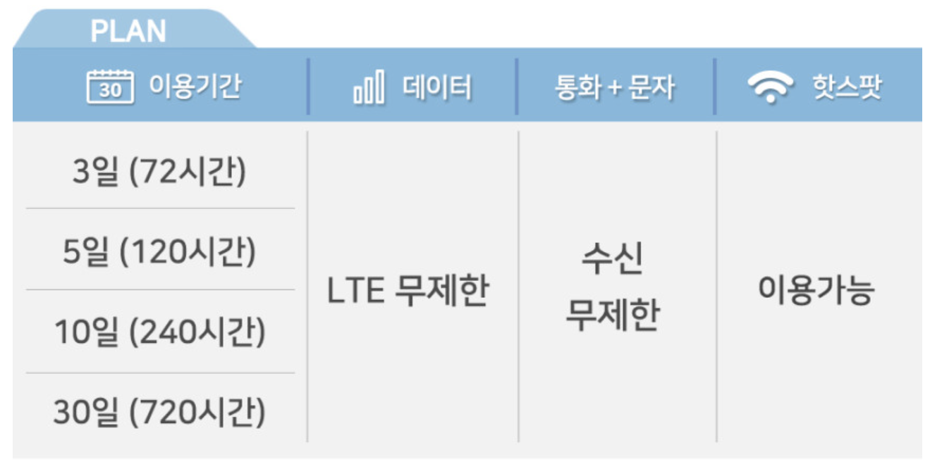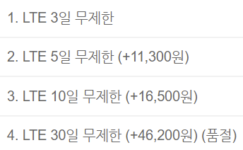 3일 무제한으로 구입을 했다. 개통 시간을 잘 확인해야한다. 구입 시 언제 개통을 시작할 것인지 날짜를 기입하게 되어있다.