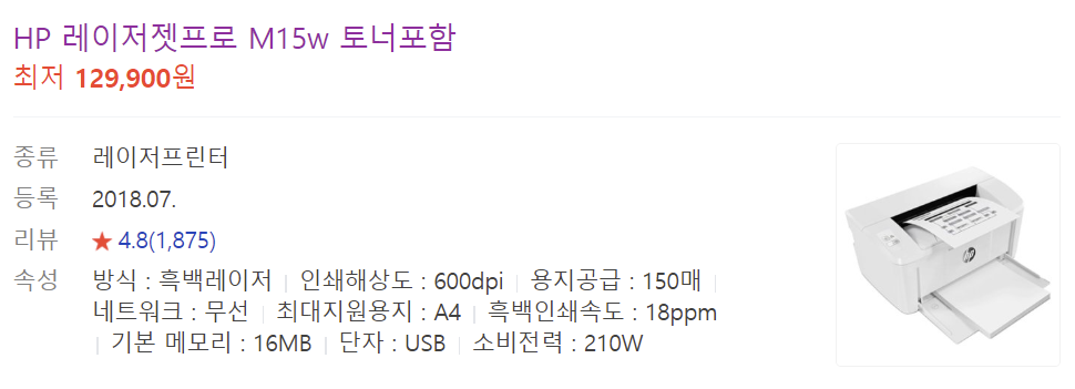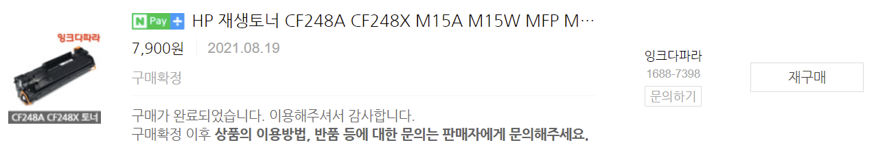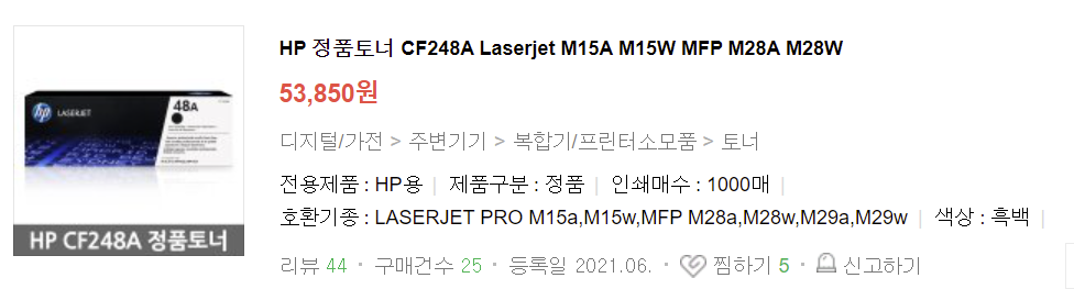 HP M15W 레이저프린터 재생토너 CF248X 대용량 구입 및 사용 후기