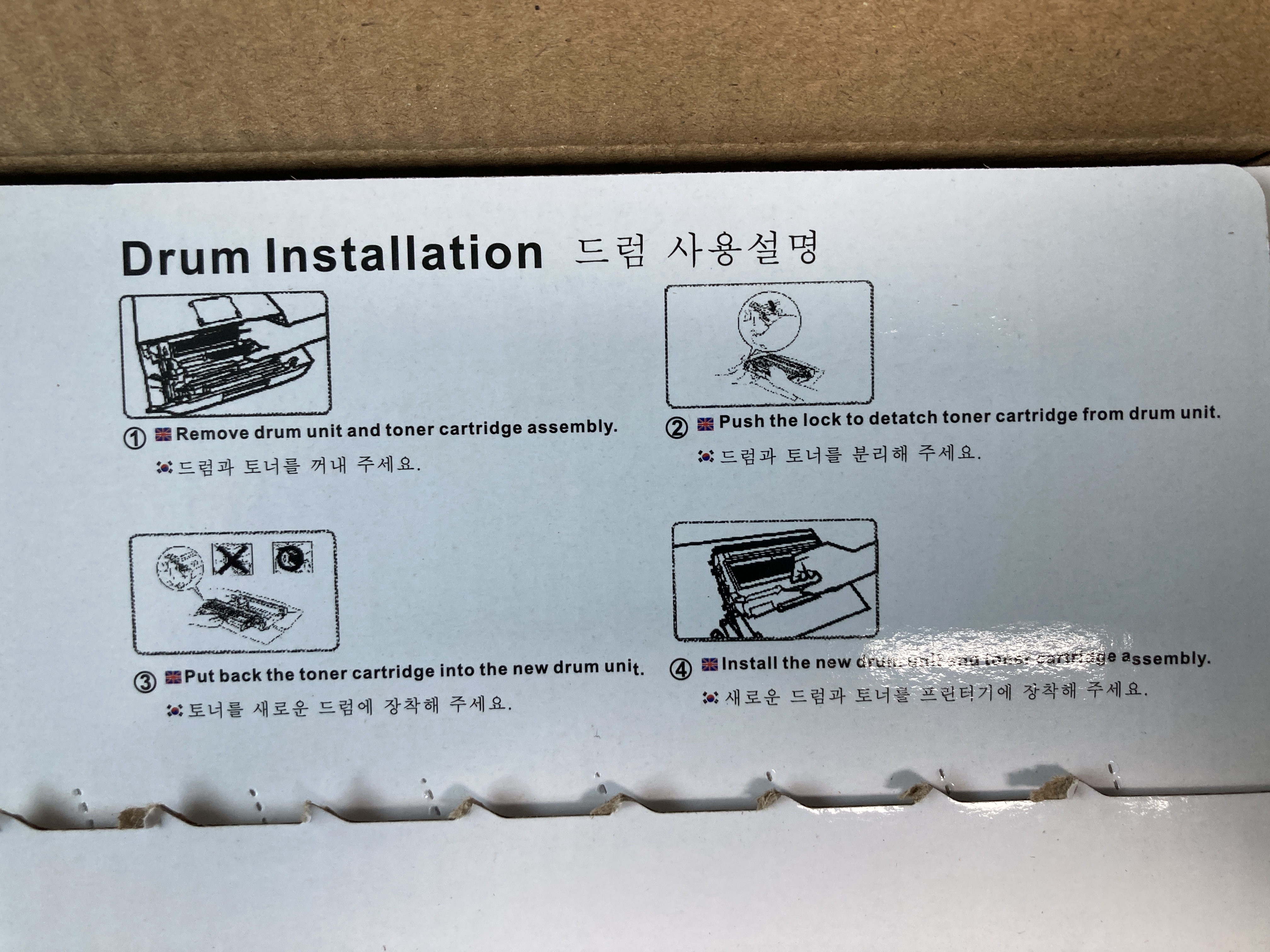 재생토너지이만 품질이 정품 같다. 주요 부위 보호테이프로 정품과 다를바 없다.