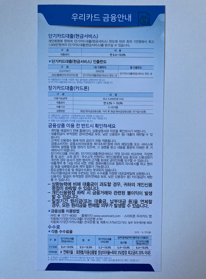 현금서비스도 가능한 듯 한데...... 이자가 높음