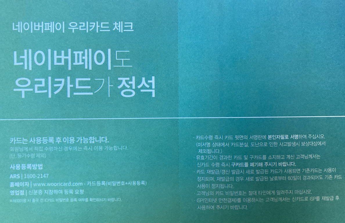 네이버페이 신한카드 대신 우리카드 발급 후기