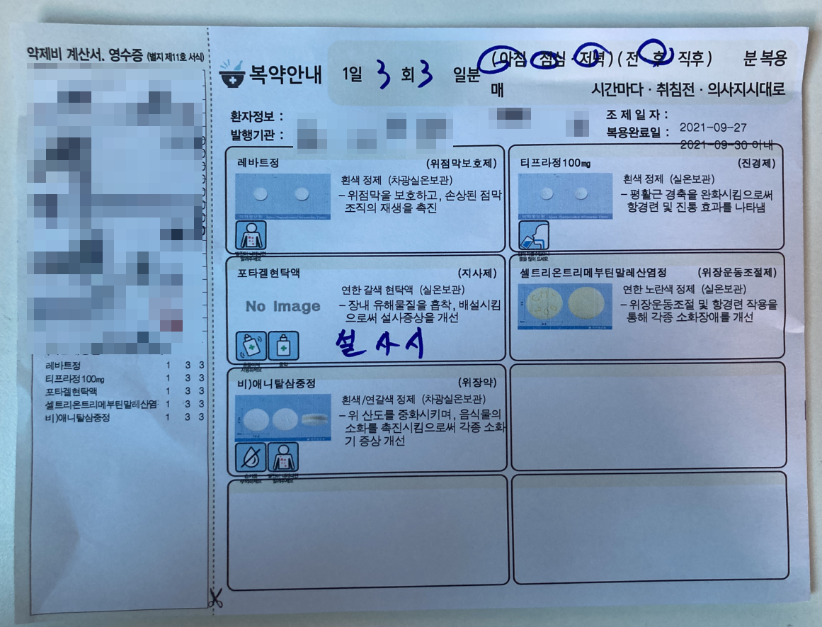 처방전에 따라 약을 복용하니 복통의 주기가 짧아졌다.
