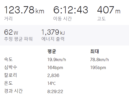 총평: 갈 때, 올때 역풍에 종일 힘들었다. 전면 바람 막을 수 있는 고글이 필요하다.