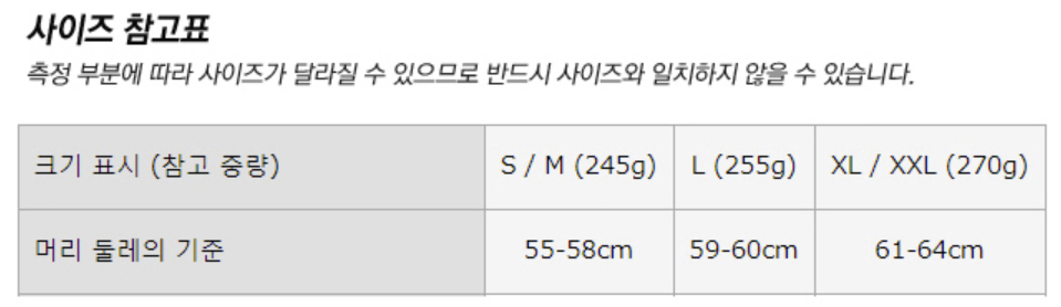 M 사이즈 기준 245그램으로 다소 무겁다. 고글 포함인지 미포함인지 명시가 안되어 있다.