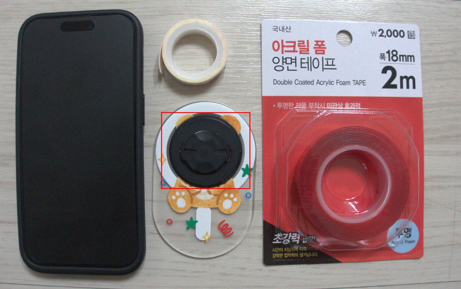 처음에는 원래 부착하는 곳에 부착했는데 공간이 살짝 뜨기 때문에 양면 테이프를 두 겹으로 사용했다.