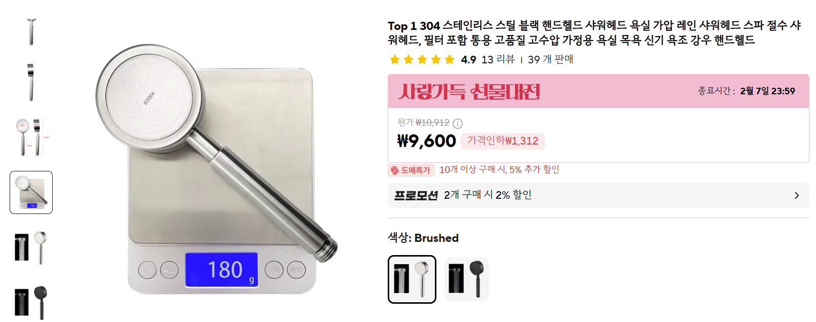스테인리스 샤워헤드로 검색하면 더 저렴한 제품도 많다.