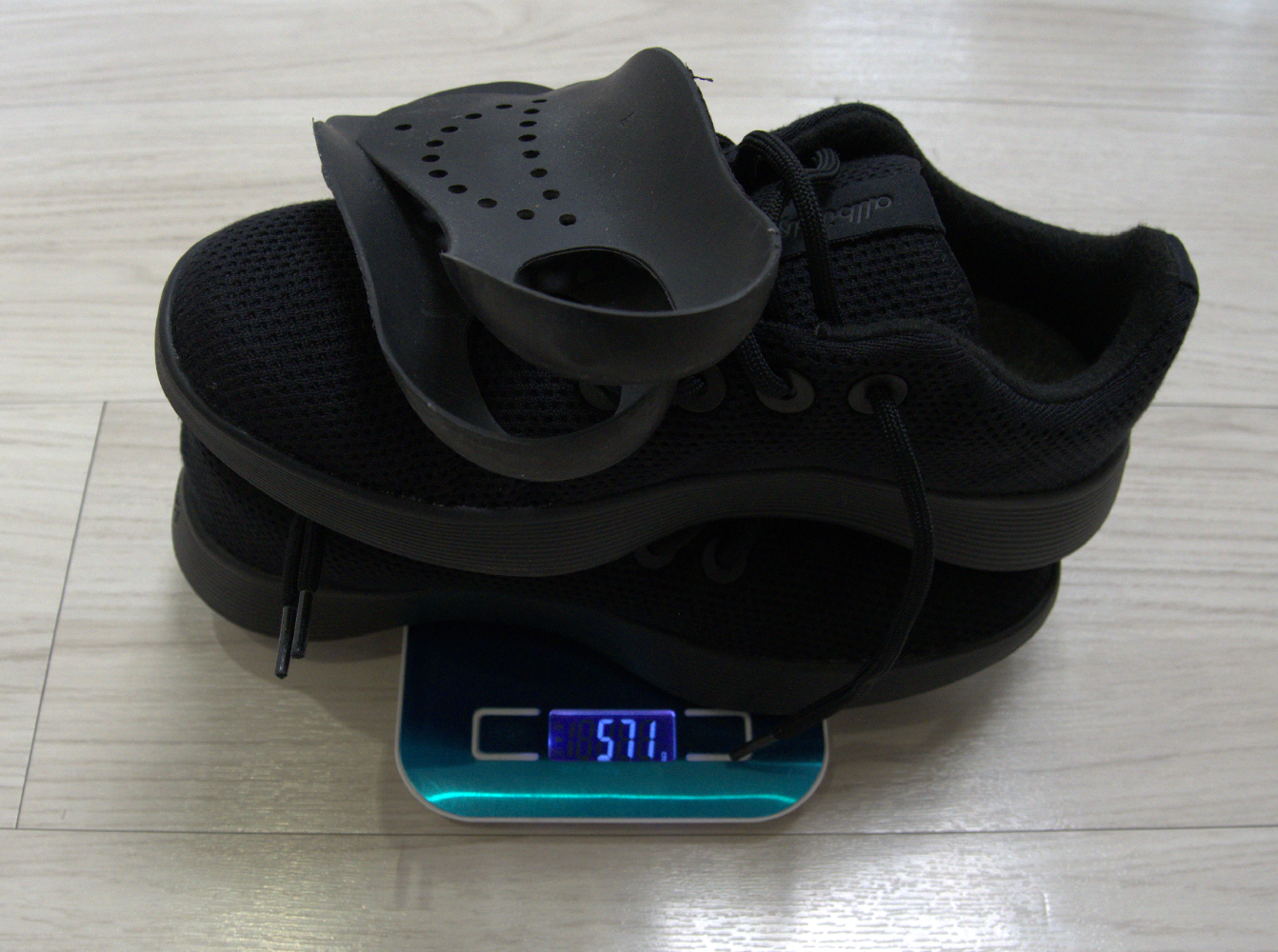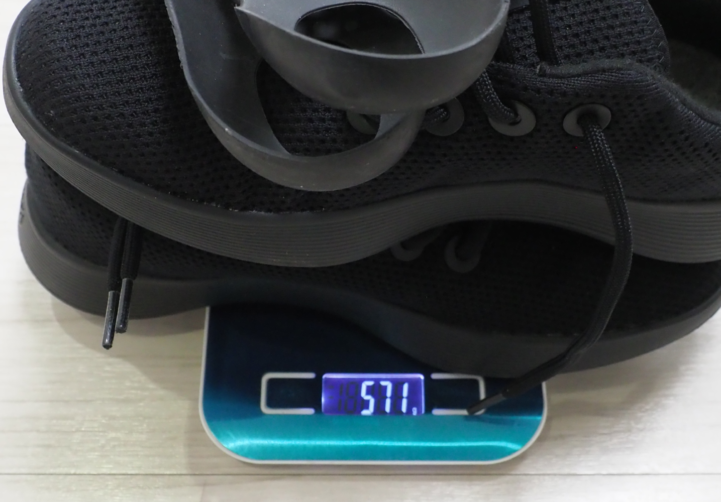 490g이다. 발바닥 아치 보정을 사용할 것이기 때문에 571g이 실 착용 무게다. 그래도 아디다스 스니커즈보다 가볍다.