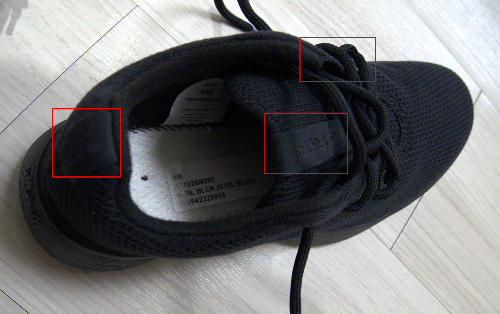 가벼운 이유는 소재 자체도 가볍지만 신발을 구성하는 부자재들도 가볍다. 심하게 힘을 주면 잡아 뜯을 수 있는 느낌이다.